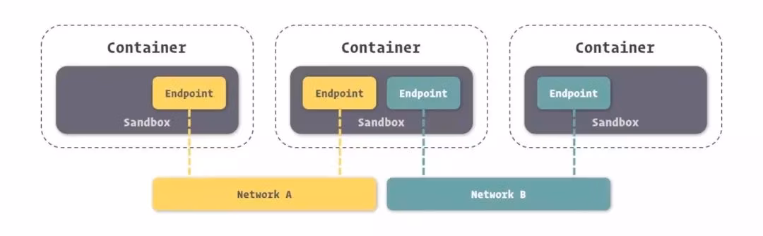 Endpoint,就是虚拟网络的接口,就像普通网络接口一样,Endpoint 的主要职责是负责创建连接。在 CNM 中,终端负责将沙盒连接到网络。个人理解:Endpoint 与常见的网络适配器类似,也就意味着 Endpoint 只能接入某一个网络。因此,如果容器需要接入到多个网络,就需要多个 Endpoint。