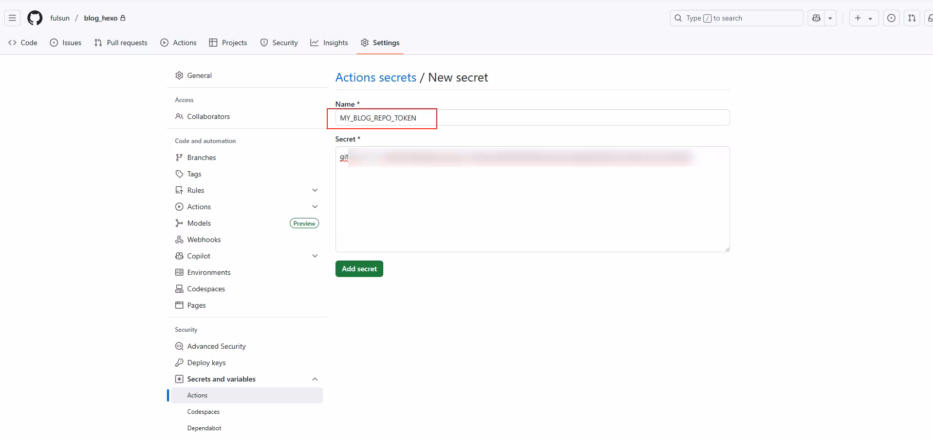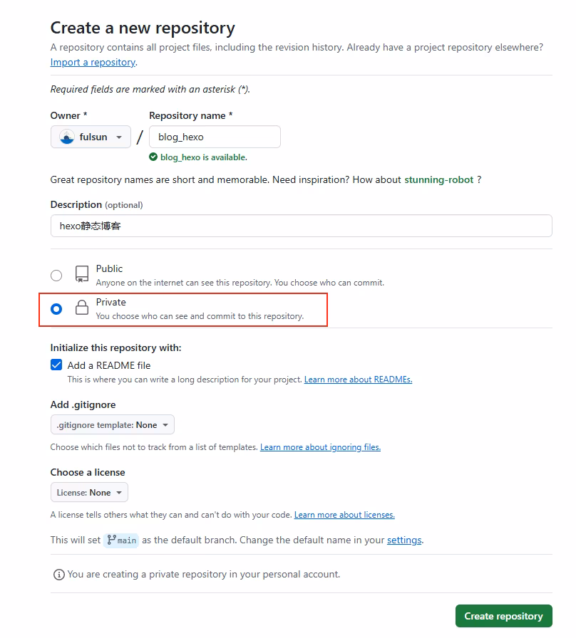 git add . git commit -m "first commit" # 推送到 Github git push origin main To github.com:fulsun/blog_hexo.git f672d4d..928fa22 main -> main