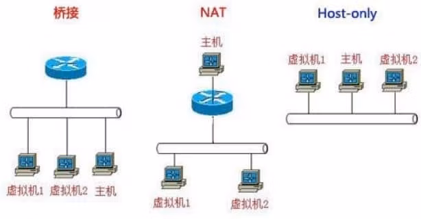 - NAT:NAT模式就是虚拟机要联网得先通过宿主机才能和外面进行通信。