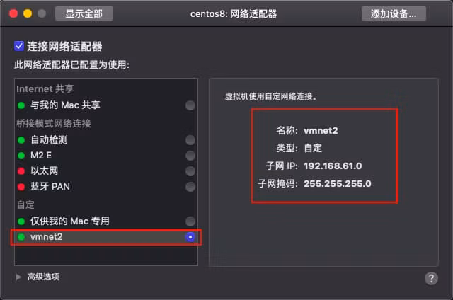 注意 :这里的网关地址用子网 IP ,最后一位为 2,bigsur版本为1,具体网关查看方式