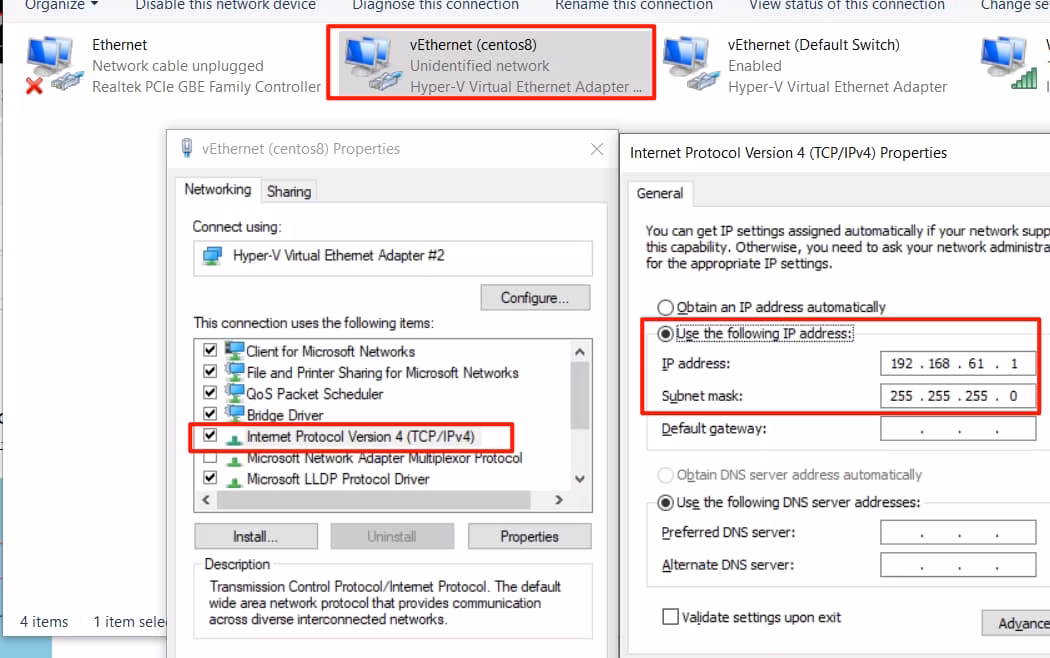 - 主机的网卡和虚拟交换机(vmnet0)之间通过虚拟网桥连接